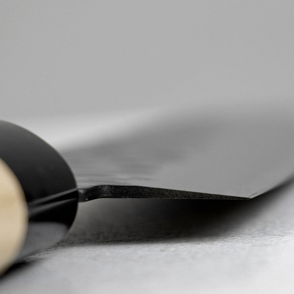 The basic principle of maintaining stainless steel knives is to wipe them dry. Leaving a wet knife to dry on its own will result in the appearance of small spots of rust. It is completely unacceptable to wash the knives in a dishwasher, chemicals and high temperature will negatively affect the handle and the blade, it can also lead to permanent damage to the knife. The knife is used only for cutting soft, boned and non-frozen products. If the blade comes into contact with the bone, it can chip. When cutting, do not twist the knife from side to side, as it may break the tip if the knife is jammed in the product. The wood and plastic boards recommended by us, cutting on glass or stone boards is prohibited, it will lead to an accelerated process of blunting the knife and possible nicks. The knife should only be used as a cutting tool, the thin, sharp design perfectly cuts the products, but when you try to open the jars, the blade may chip.
