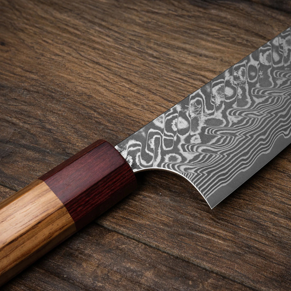 - Handle: Cherry wood, pakkawood ferrule