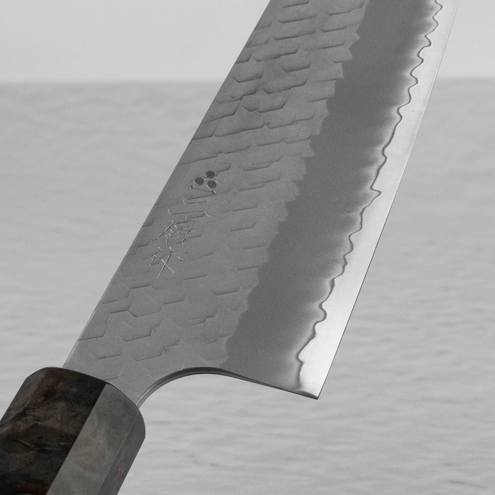 R2 and SG2 steels are basically the same steels, sold under different names. R2 steel is distributed by one of the leaders in Japanese steel production, namely Kobelco Steel Company. This steel is also purchased by Takefu Steel Company which labels it as SG2 (according to Koki Iwahara of JapaneseChefsKnife.Com). This steel is powder-coated, high-speed steel. Thanks to the unique production process, this steel has a very high degree of purity, precisely selected chemical composition and an intricately designed structure. It has an outstanding sharpness at the level of 64 HRC, it is harder than most powder steels, thanks to the significant share of molybdenum and vanadium forming carbides. A significant amount of vanadium, in addition to improving the hardness and abrasion resistance of steel, does not reduce plastic properties, and even improves impact strength and elasticity. The very high content of molybdenum, improving the strength properties, together with chromium also affects the corrosion resistance of this steel. R2 / SG2 keeps sharpness for a very long time. In addition, it is maintenance-free, with excellent blades, even better than the iconic ZDP-189. This steel is ideal for professionals who have the highest demands on their tools.