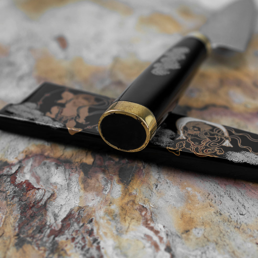 Petty 13 cm Takeshi Saji Art Fujin Raijin R-2 + Saya