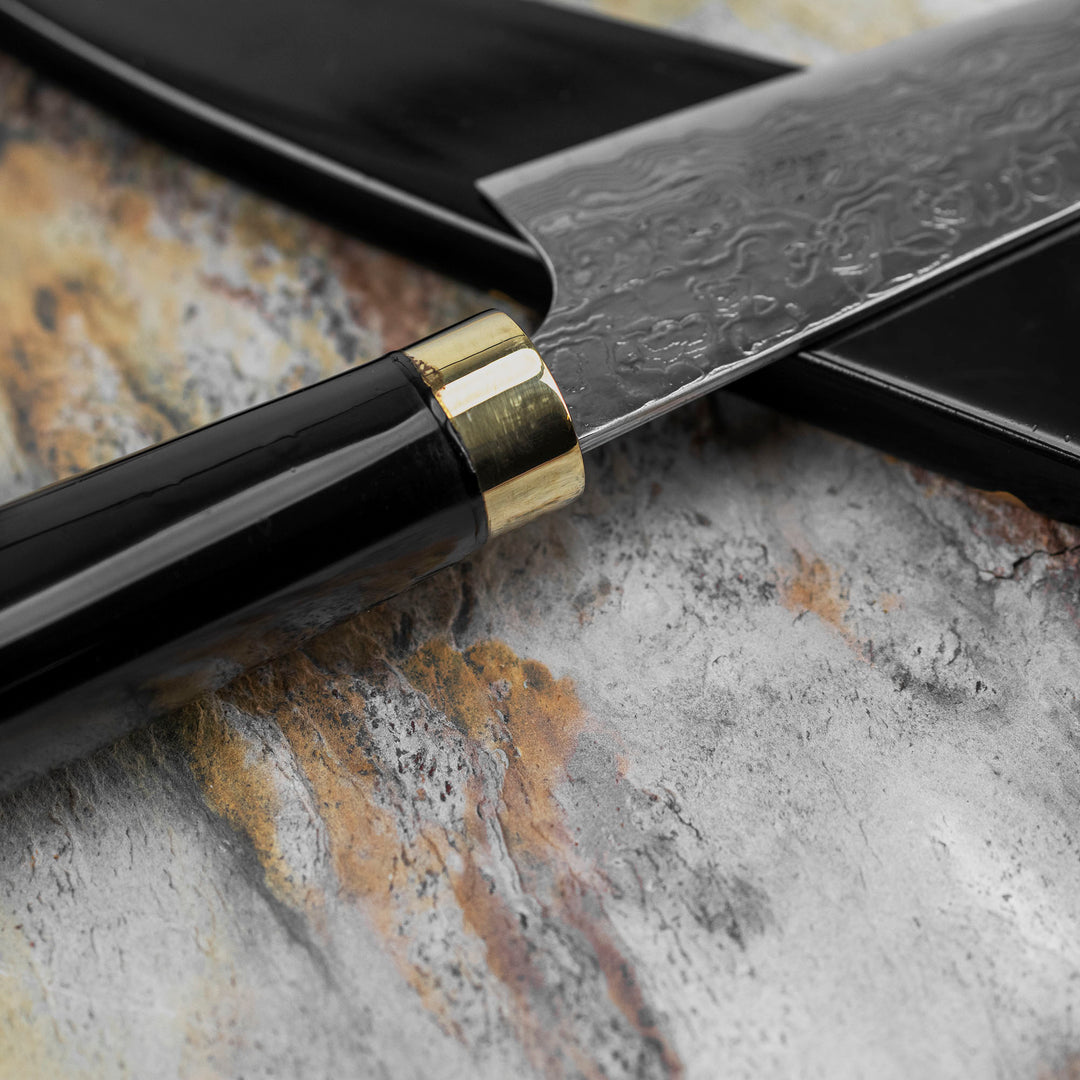 • Handle: Riveted, lacquered pakkawood