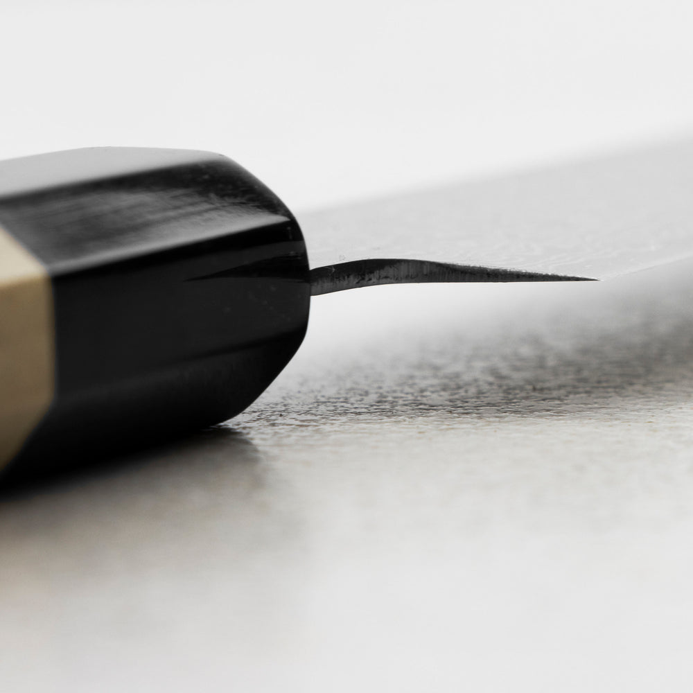 The basic principle of maintaining stainless steel knives is to wipe them dry. Leaving a wet knife to dry on its own will result in the appearance of small spots of rust. It is completely unacceptable to wash the knives in a dishwasher, chemicals and high temperature will negatively affect the handle and the blade, it can also lead to permanent damage to the knife. The knife is used only for cutting soft, boned and non-frozen products. If the blade comes into contact with the bone, it can chip. When cutting, do not twist the knife from side to side, as it may break the tip if the knife is jammed in the product. The wood and plastic boards recommended by us, cutting on glass or stone boards is prohibited, it will lead to an accelerated process of blunting the knife and possible nicks. The knife should only be used as a cutting tool, the thin, sharp design perfectly cuts the products, but when you try to open the jars, the blade may chip.