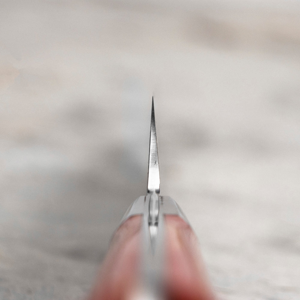 The basic principle of maintaining stainless steel knives is to wipe them dry. Leaving a wet knife to dry on its own will result in the appearance of small spots of rust. It is completely unacceptable to wash the knives in a dishwasher, chemicals and high temperature will negatively affect the handle and the blade, it can also lead to permanent damage to the knife. The knife is used only for cutting soft, boned and non-frozen products. If the blade comes into contact with the bone, it can chip. When cutting, do not twist the knife from side to side, as it may break the tip if the knife is jammed in the product. The wood and plastic boards recommended by us, cutting on glass or stone boards is prohibited, it will lead to an accelerated process of blunting the knife and possible nicks. The knife should only be used as a cutting tool, the thin, sharp design perfectly cuts the products, but when you try to open the jars, the blade may chip.