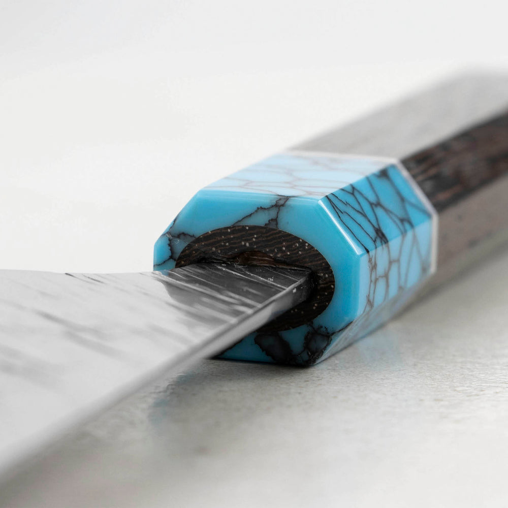 R2 and SG2 steels are basically the same steels, sold under different names. R2 steel is distributed by one of the leaders in Japanese steel production, namely Kobelco Steel Company. This steel is also purchased by Takefu Steel Company which labels it as SG2 (according to Koki Iwahara of JapaneseChefsKnife.Com). This steel is powder-coated, high-speed steel. Thanks to the unique production process, this steel has a very high degree of purity, precisely selected chemical composition and an intricately designed structure. It has an outstanding sharpness at the level of 64 HRC, it is harder than most powder steels, thanks to the significant share of molybdenum and vanadium forming carbides. A significant amount of vanadium, in addition to improving the hardness and abrasion resistance of steel, does not reduce plastic properties, and even improves impact strength and elasticity. The very high content of molybdenum, improving the strength properties, together with chromium also affects the corrosion resistance of this steel. R2 / SG2 keeps sharpness for a very long time. In addition, it is maintenance-free, with excellent blades, even better than the iconic ZDP-189. This steel is ideal for professionals who have the highest demands on their tools.