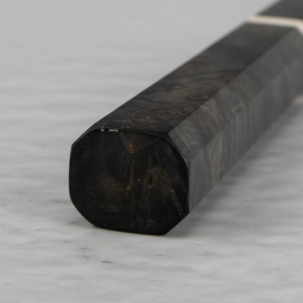 R2 and SG2 steels are basically the same steels, sold under different names. R2 steel is distributed by one of the leaders in Japanese steel production, namely Kobelco Steel Company. This steel is also purchased by Takefu Steel Company which labels it as SG2 (according to Koki Iwahara of JapaneseChefsKnife.Com). This steel is powder-coated, high-speed steel. Thanks to the unique production process, this steel has a very high degree of purity, precisely selected chemical composition and an intricately designed structure. It has an outstanding sharpness at the level of 64 HRC, it is harder than most powder steels, thanks to the significant share of molybdenum and vanadium forming carbides. A significant amount of vanadium, in addition to improving the hardness and abrasion resistance of steel, does not reduce plastic properties, and even improves impact strength and elasticity. The very high content of molybdenum, improving the strength properties, together with chromium also affects the corrosion resistance of this steel. R2 / SG2 keeps sharpness for a very long time. In addition, it is maintenance-free, with excellent blades, even better than the iconic ZDP-189. This steel is ideal for professionals who have the highest demands on their tools.