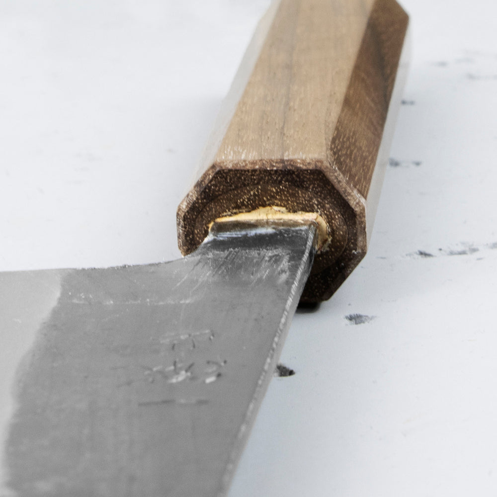 Shirogami 1 steel, another steel cast by Hitachi Steelworks, also known as Shiro-ko 1 or simply Shiro-ko. It is a high-carbon steel with a degree of purity subject to restrictive standards. It contains more carbon than Shirogami 2 steel, which makes it even harder, which, however, makes it difficult to work with. With increasing hardness, the sharpness increases, but also the brittleness. A skilled user of knives will surely appreciate razor-sharp blades with incredibly long sharpness. As with all carbon steels, proper maintenance is essential with the prospect of corrosion.