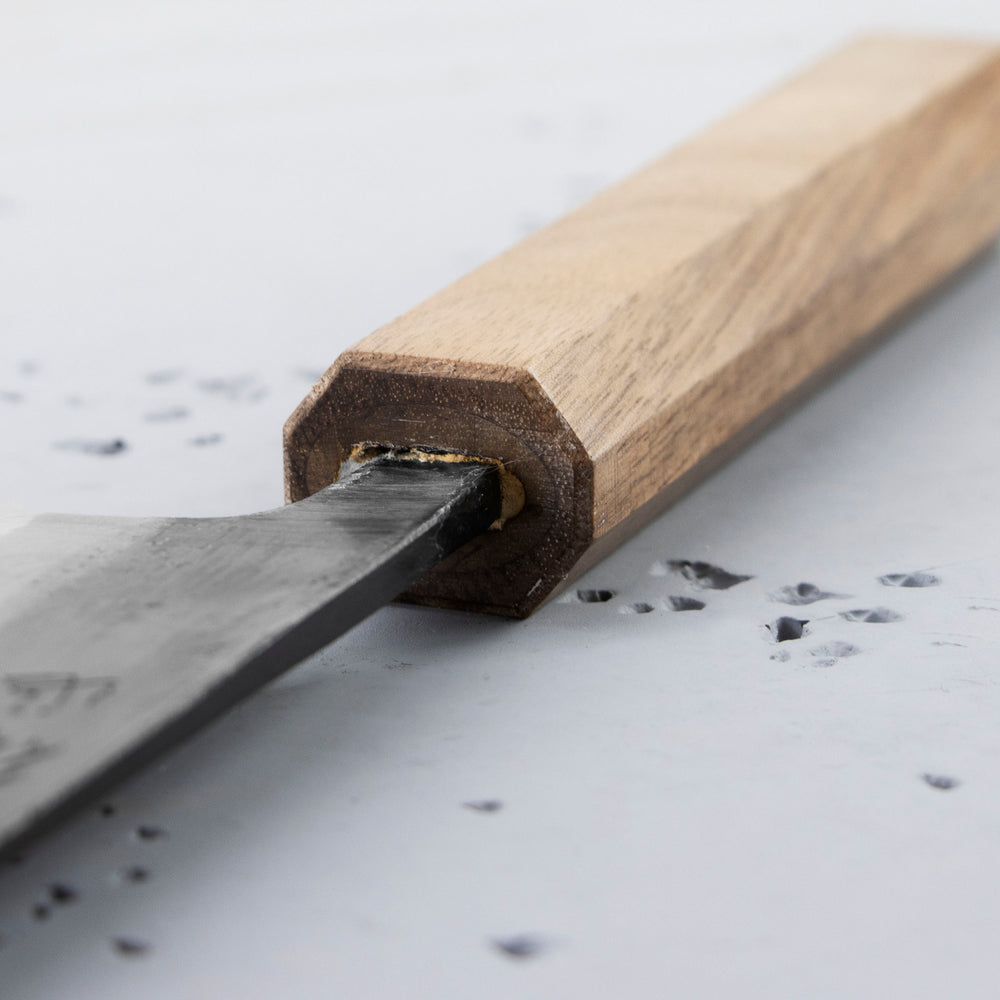 Shirogami 1 steel, another steel cast by Hitachi Steelworks, also known as Shiro-ko 1 or simply Shiro-ko. It is a high-carbon steel with a degree of purity subject to restrictive standards. It contains more carbon than Shirogami 2 steel, which makes it even harder, which, however, makes it difficult to work with. With increasing hardness, the sharpness increases, but also the brittleness. A skilled user of knives will surely appreciate razor-sharp blades with incredibly long sharpness. As with all carbon steels, proper maintenance is essential with the prospect of corrosion.