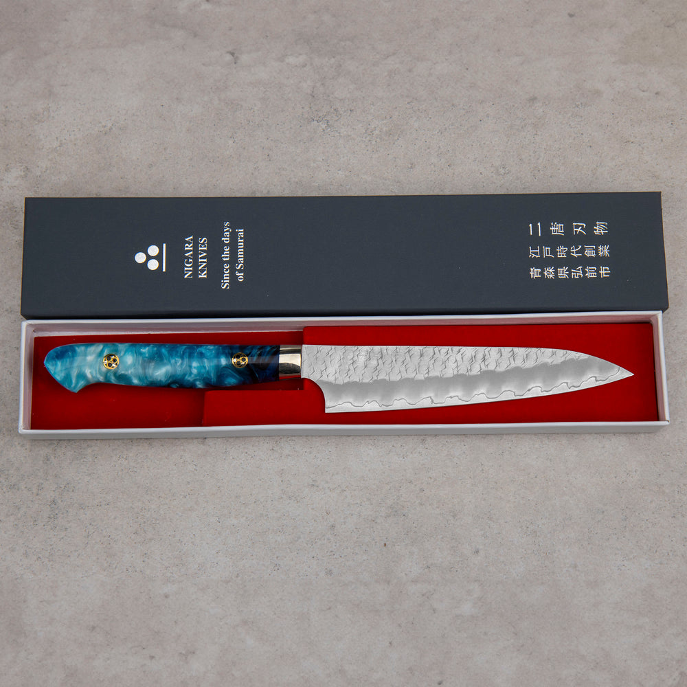 What sets Nigara Hamono apart further is its profound expertise in steelworks. Expanding beyond sword-smithing into construction steelworks, steel beam technologies, and historical metal structure restorations, Nigara has earned the title of "steel guru". This deep understanding of steel allows Nigara to control the entire process of knife-making, from forging to finishing, ensuring unparalleled quality and innovative designs.
