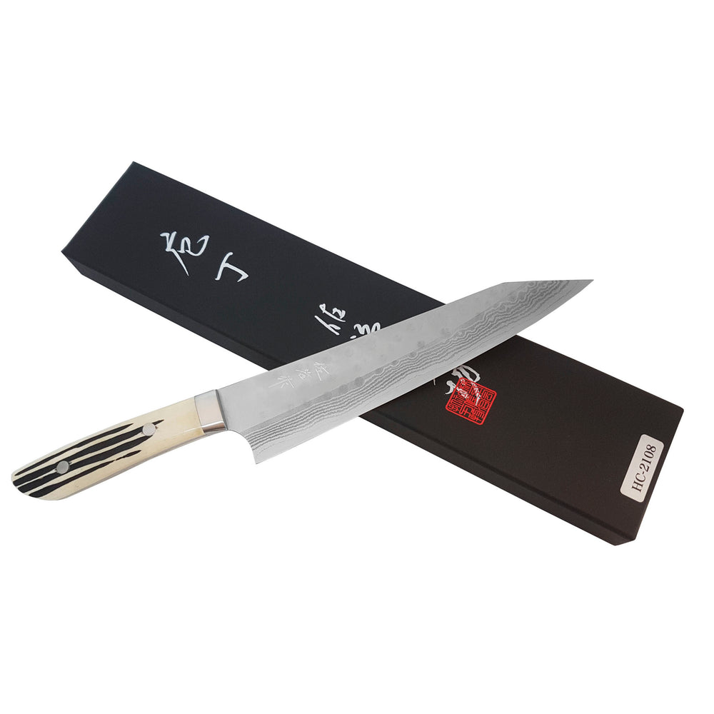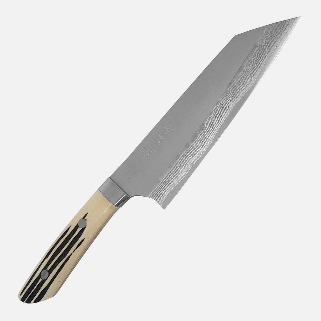 Japanese high speed steel produced by Naji Fujikoshi. It is known as one of Japan's first powder "super steels". It is gaining more and more popularity among Japanese knife makers. It is used by, inter alia, Master Takeshi Saji, who uses his over 50 years of experience in working with them. The growing interest is certainly due to the excellent strength properties. It is extremely resistant to abrasion, thanks to which it keeps sharpness even at small sharpening angles of the cutting surface. Usually it is hardened to about 64 HRC, although it is an impressive hardness, the steel itself could be hardened even higher, but it is not being done to keep the steel more resistant to chipping. Due to its high strength properties, it is not a particularly plastic steel, to improve it SRS-13 is often used as a core in knives laminated with amphibians (more plastic steel). Due to the high content of chromium, it is stainless.
