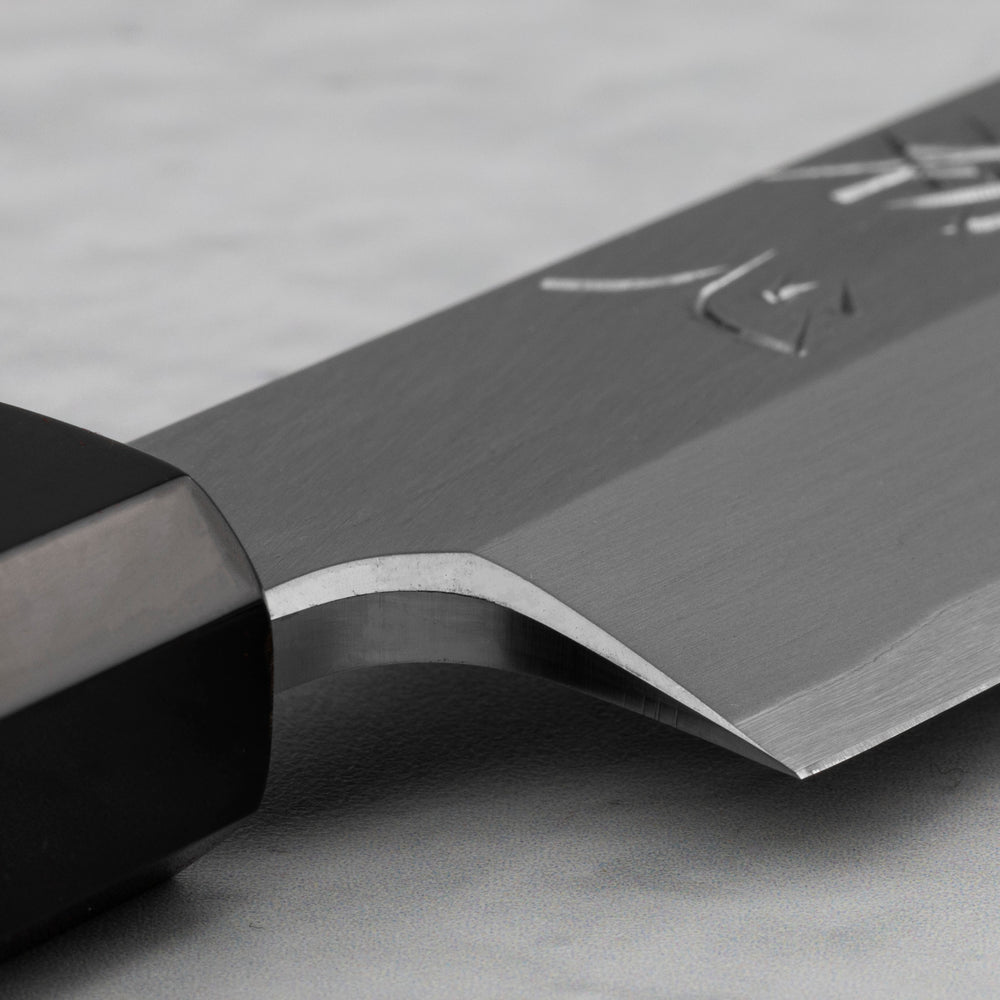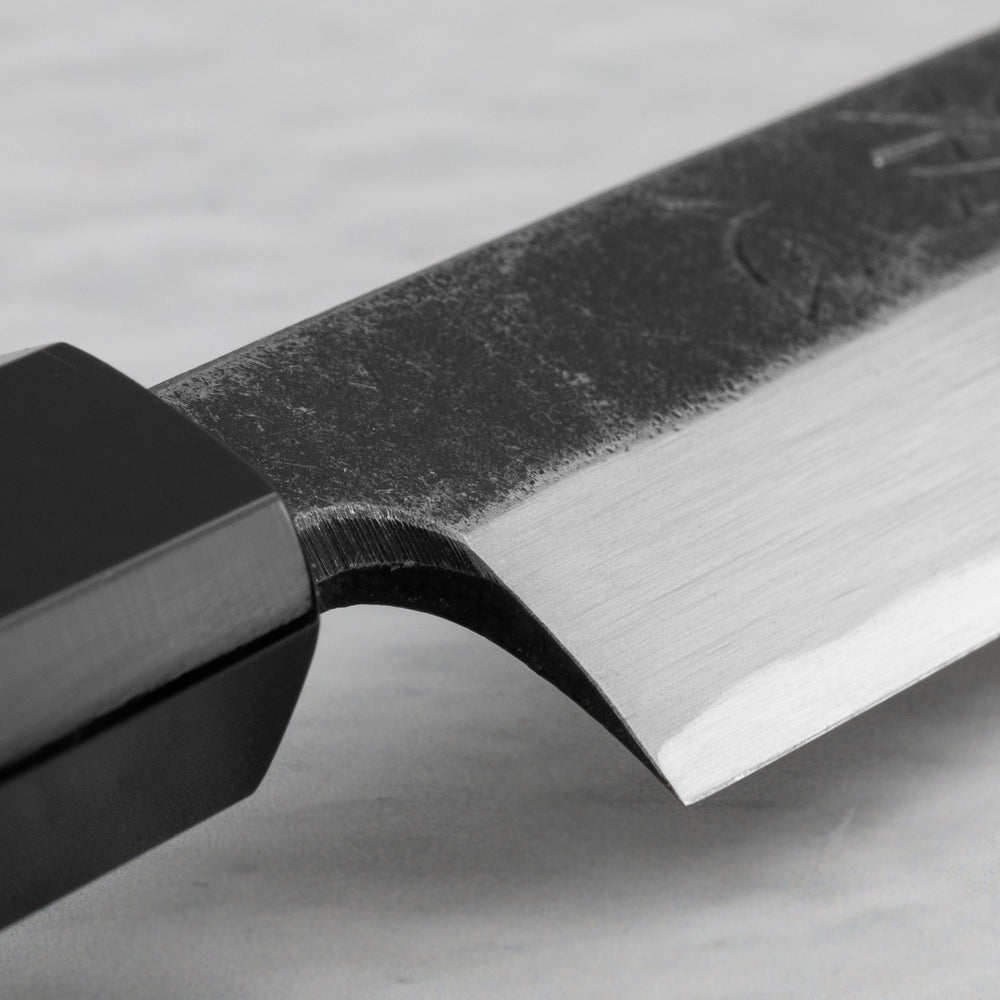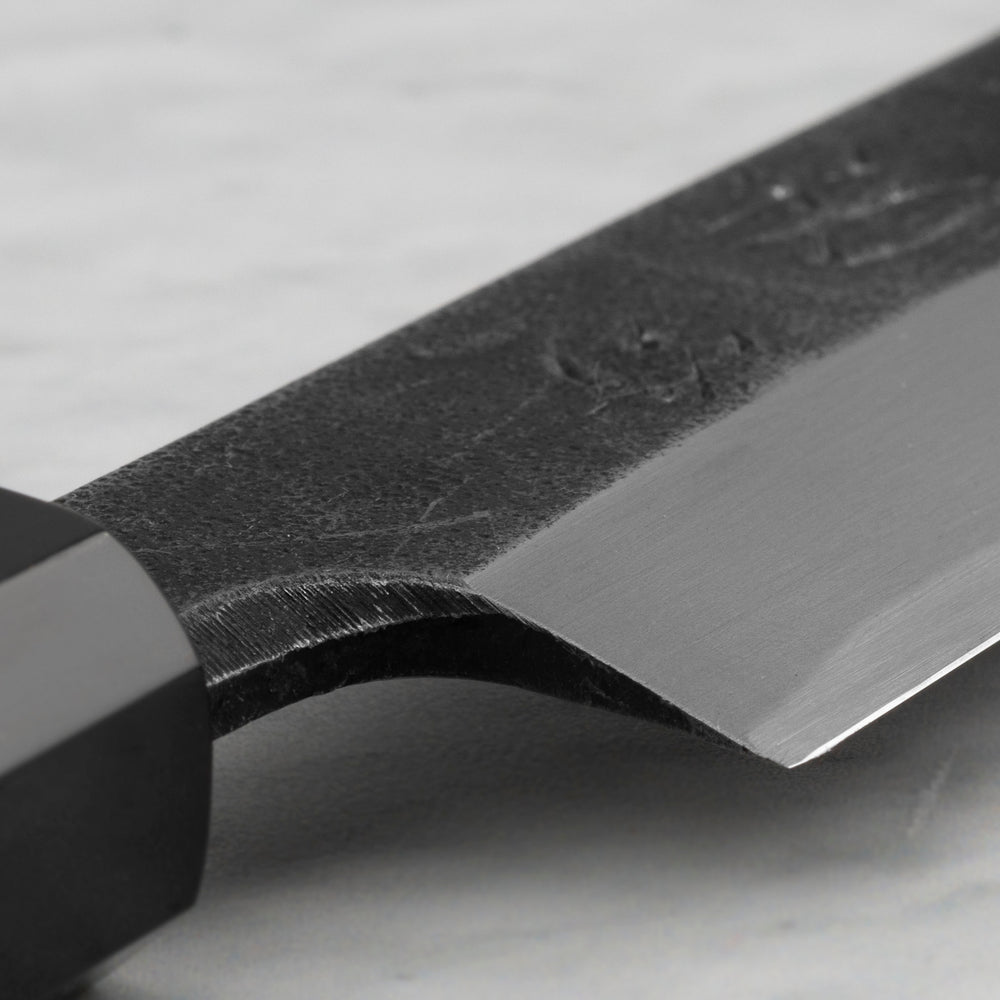 The most common construction is Ni-mai (two layers) where the blade is forged from high carbon steel (usually Shirogami, less often Aogami) and iron. The purpose of this procedure is to make the knife more flexible, preventing it from damage, it also allows you to straighten it when needed, and most of all, iron is much easier to work and sharpen.